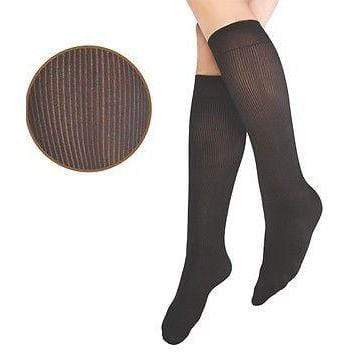 This unique fine stripe pattern will add a touch of sheer while still giving great coverage. The cuff holds the sock up all day long without leaving uncomfortable marks.